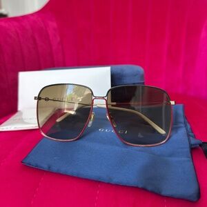 - Brown gradient lenses featuring Gucci logo and bee detail