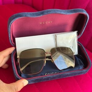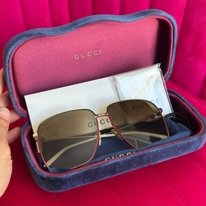 Authentic Gucci Metal Sunglasses GG0394S – Green/Red Frame, Gold Detail