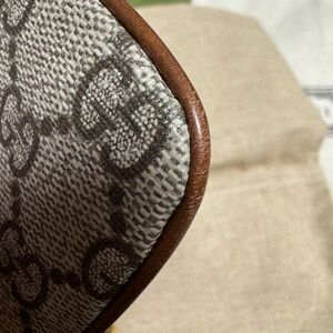 Gently used authentic Gucci Ophidia Key Case. Very clean with a bit of scuffing on the gold accents (took very close-up photo to show but you can barely see with the naked eye). Ends show very little signs of wear. Comes with original dust case, box, ribbon, all paperwork and a Gucci canvas bag from the purchase on Gucci.com! She is lovely and so fun to use. Easily carries an ID and several cards. Nice to pull out of your purse and carry your necessities on it’s own. Smoke free home!
