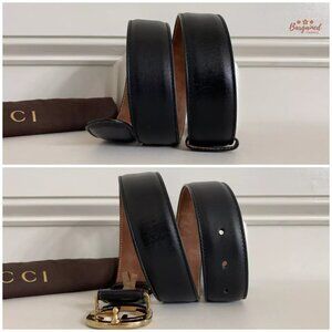 Authentic Gucci Pink Calfskin Leather Gold Interlocking G Buckle Belt 80/32