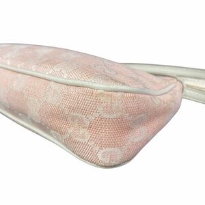 Authentic Gucci Pink Canvas Baguette Shoulder/Handbag Off-White Leather Trim Y2K