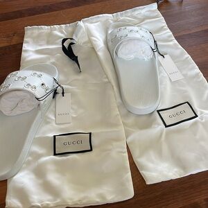 Authentic!!! All tags, box, and dust bags included! These slides are beautiful! Only worn once very briefly.