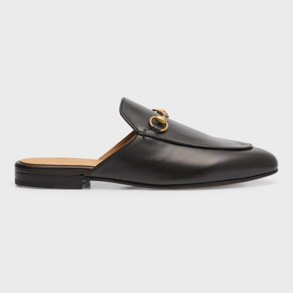 An essential Gucci style since its debut in the Fall-Winter 2015 fashion show, the Princetown slipper is presented in black leather. The mule design features the distinctive gold-toned Horsebit, an archival symbol inspired by the equestrian world.