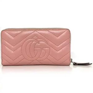 Authentic Gucci Quilt GG Marmont Zip Around Wallet Pink, Gold Hardware