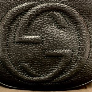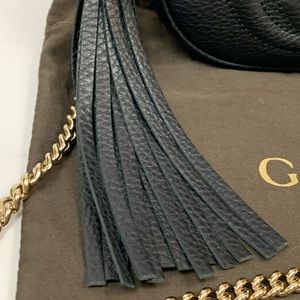 Authentic Gucci Soho Mini Round Chain Black in excellent pre-loved condition. Crafted of pebbled leather, features a chain strap, interior patch pocket, tassel detail, zip-top closure, interlocking G’s on front and dust bag included. Very minimal wear to bag. Please see all pics! Approximate measurements: 6.75x5.5x1.75.