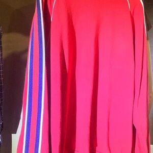 Color: Red with Blue & White Sleeve Stripes