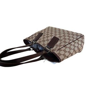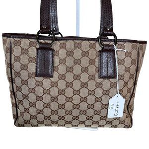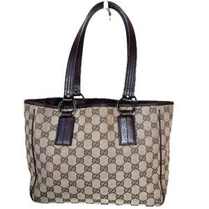 Authentic Gucci Tote Bag Brown Canvas Used GG Handbag Vintage