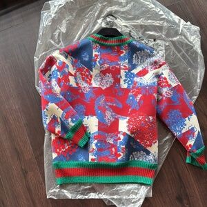 New and authentic Gucci Union Jack sweatshirt. With jeweled bow which is detachable and can be taken off or worn with other things, metallic accent trim. Size is XXS but it's oversized and easily fits a XS-S. No low offers or trades of any kind.
