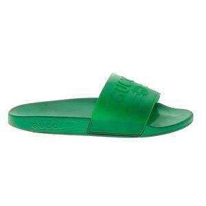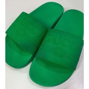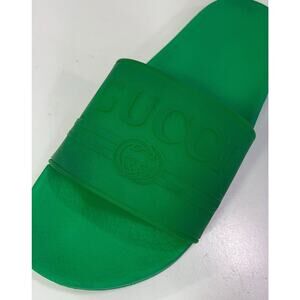 Authentic Gucci Unisex Green Rubber Slide Sandals Size US Women 10/Men 8