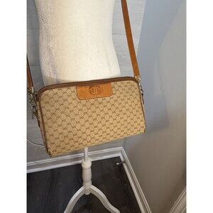 Authentic Gucci Vintage GG Canvas & Leather Crossbody Bag With Adjustable Strap