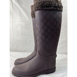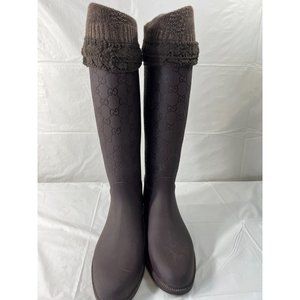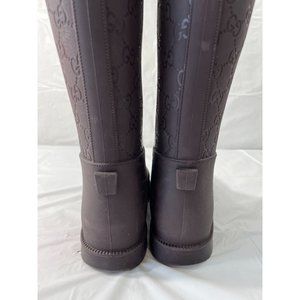 Authentic Gucci Vintage GG Monogram Rain Boots Brown Size 6