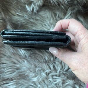 Stylish black leather & suede wallet with a black embossed logo. Perfect for everyday use.
