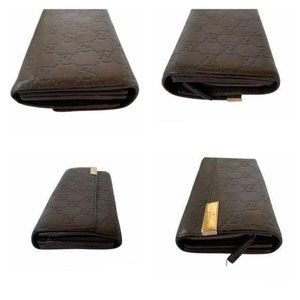 Authentic Gucci Wallet Long Brown Leather GG Logo Vintage On Sale