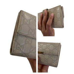 Authentic Gucci Wallet Long White Cream Leather GG Vintage On Sale