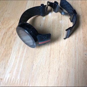 Authentic Black Gucci watch is 44 mm. It is a man’s watch, but Gucci products are generally unisex. The band needs repair. It doesn’t need to be replaced. Do not hesitate to make an offer.