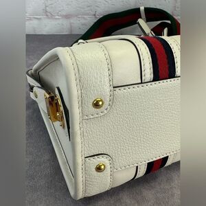 Authentic Gucci Web Sherry Line 2 Way Small Bauletto Leather Bag 715772 White