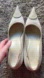 Chic Gucci heels with a pointed-toe design. Versatile beige and cream color for any outfit. Gives a vintage vibe, yet classy. Please note the multiple areas of scuffs on the toes and then moderate to severe wear on the heels and soles, some faint stains that I have not tried to get out yet with soap and water along the canvas. Mild dirt and signs of use on the inside.