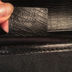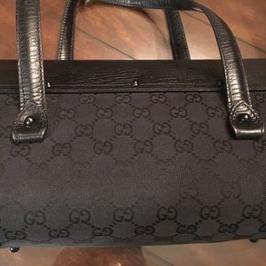 Black leather and canvas Gucci bag with a good luck bamboo in the front. Great condition and very roomy inside.
