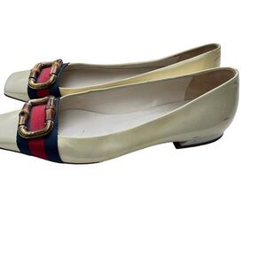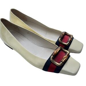 Authentic Gucci patent cream flats with Bamboo detail. Some light scuffs / surface wear. Size 6 1/2. Made in Italy.