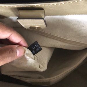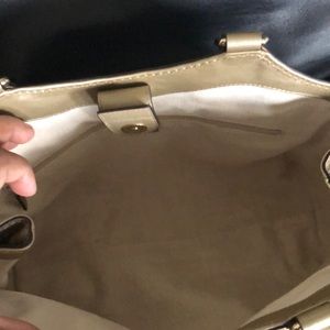 I actually bought a bigger bag as this one is a medium. This bag is very clean no stains inside or out. There is no keychain and snap on left side is broken but can be fixed, the snap is still there