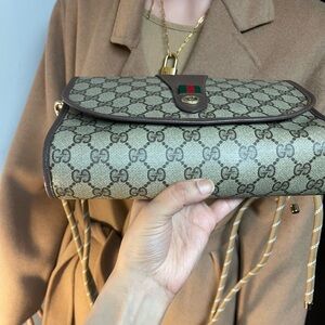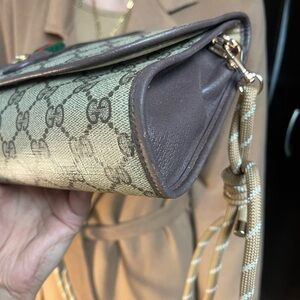 Authentic Gucci vintage web sherry line clutch bag (HK45)