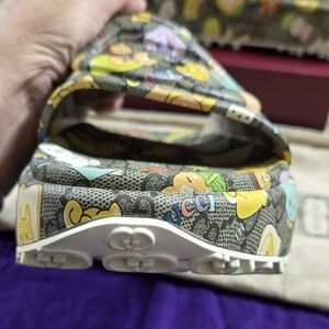 Special Edition Gucci x Pikarar slide sandals. Men's size 9/ women's size 10. A collaboration between the Italian luxury house Gucci and artist Angela Nguyen also known as Pikarar. The slides are in very good condition with no signs of tears or holes. The slides come with Gucci dust bags.
