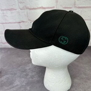 Black cap with green interlocking gg logo