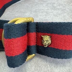 Authentic Gucci Web Feline D Ring Adjustable Belt 453271 90/36