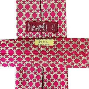 Authentic HERMES 100% Silk Berry Red & Gold Buoy Chain Neck Tie