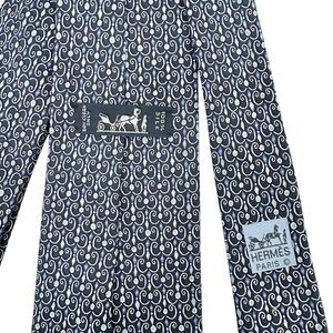 Authentic HERMES 100% Silk Blue & White Swirl Design Men’s Neck Tie