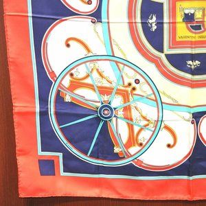 Authentic HERMES Carre 90 Scarf "WASHINGTON'S CARRIAGE" Silk Red