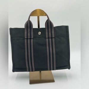 "HERMES" Fourre Tout Canvas Tote Bag With Webbed Handle
