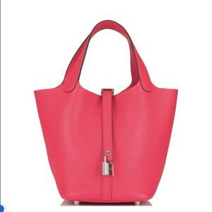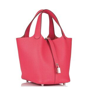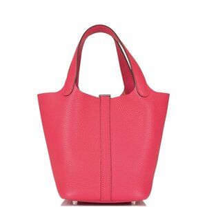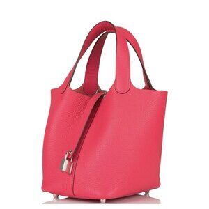 Authentic HERMES PICOTIN 18 rose extreme pink clemence leather mini bag