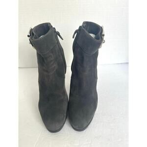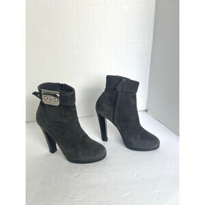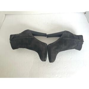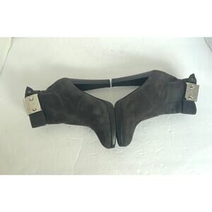 Authentic HERMES Suede Gray Black Silver Metal Embellishment Ankle Zip Boot 7.5