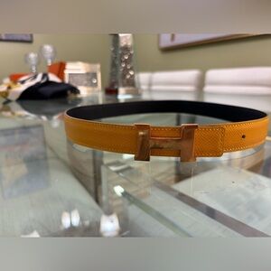 Authentic HERMÈS Jaune/Navy D'or Epsom Constance Reversible H Belt -Size 70