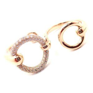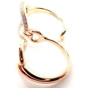 Authentic! Hermes 18k Rose Gold Diamond Filet d'Or Large Model Double Band Ring