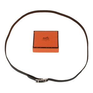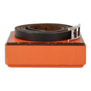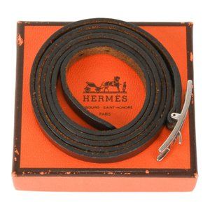 Authentic Hermes Hapi Choker Leather,Metal Bangle Black,Silver