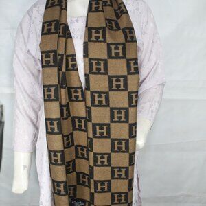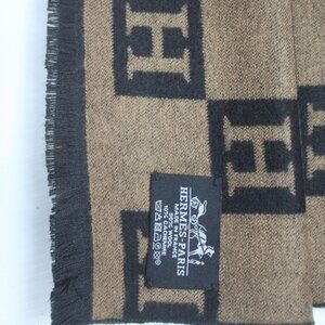 Authentic Hermes Muffler Stole Shawl Wrap 90% Wool 10% Cashmere Brown