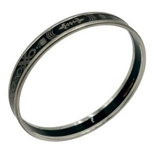 Hermès Grand Apparat 2 Narrow Enamel Bangle in black and silver enamel with palladium plated hardware.