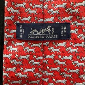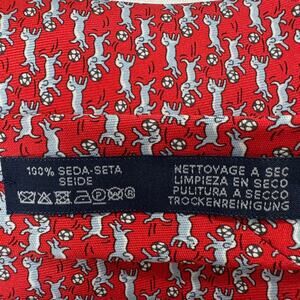 Authentic Hermès Paris Men's Silk Tie - Soccer Dogs Red Print 56 Inches& 3.5Wide