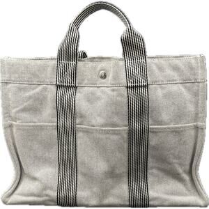 Elevate your collection with this authentic Hermès Paris Herline Fourre-Tout Tote Bag, a timeless and versatile design from one of the world’s most iconic fashion houses. Crafted from durable canvas with Hermès’ signature web-stripe handles, this tote embodies understated elegance and everyday practicality.