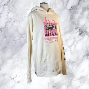 Soft blend in cream with front, back and sleeve graphic. Authentic (not an unlicensed reproduction) tour merchandise. No notable flaws!