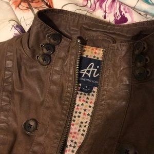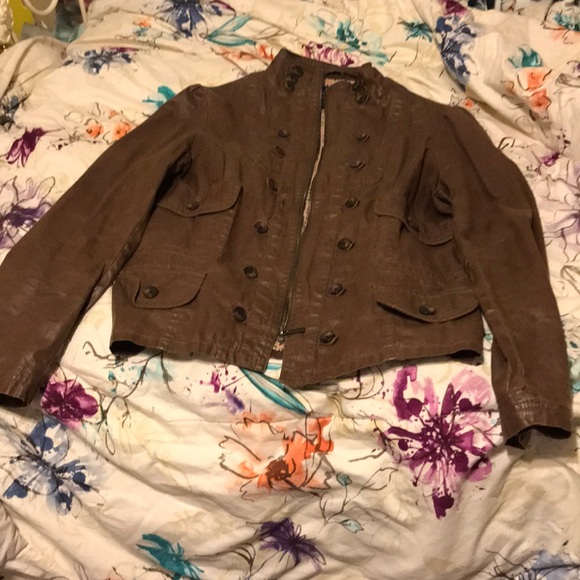 Brown Zip up 100% cotton shell and lining! Shell is textured with a slight shine to it! Does not have pockets. Super comfortable in like new condition only worn twice!