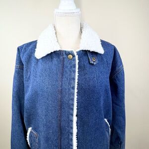 Authentic International Outerwear Denim Sherpa Lined Bomber Jacket Medium