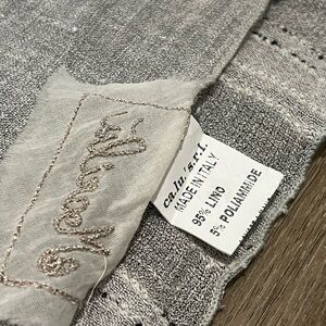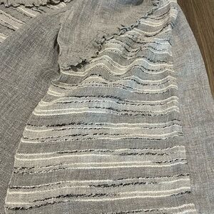 Unique gray linen scarf w/ wavy edges and ruffle detail