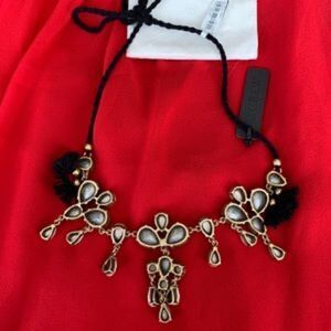 Stunning crystal and ivory necklace attached to a black adjustable cord.