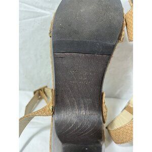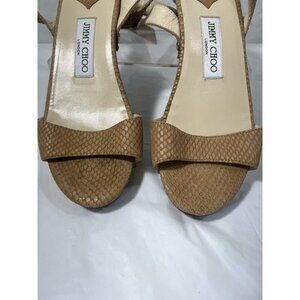 Authentic JIMMY CHOO Leather Snake Embossed Tan and Brown Wood heel size 37