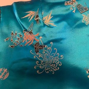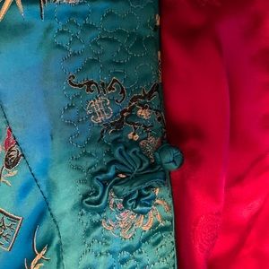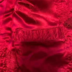 Authentic reversible Chinese jacket. Picked in China , hand made no tag but it fits my 8 yr. I suspect it is a six 5-6. It is a heavy jacket.