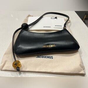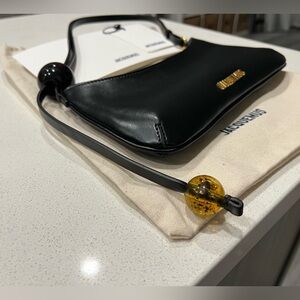 This 100% authentic jacquemus bag is in excellent condition! Black leather with gold tone hardware. Comes with everything shown in the pictures. I purchased this directly from the Jacquemus website and only wore once!