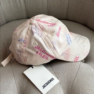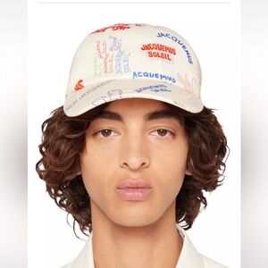 Authentic Jacquemis cream baseball cap with multicolored logos throughout. Unisex and Ideal for everyday style. Size 58 on tag. Smoke free home. New with tags. Line through inside tag to prevent store returns.